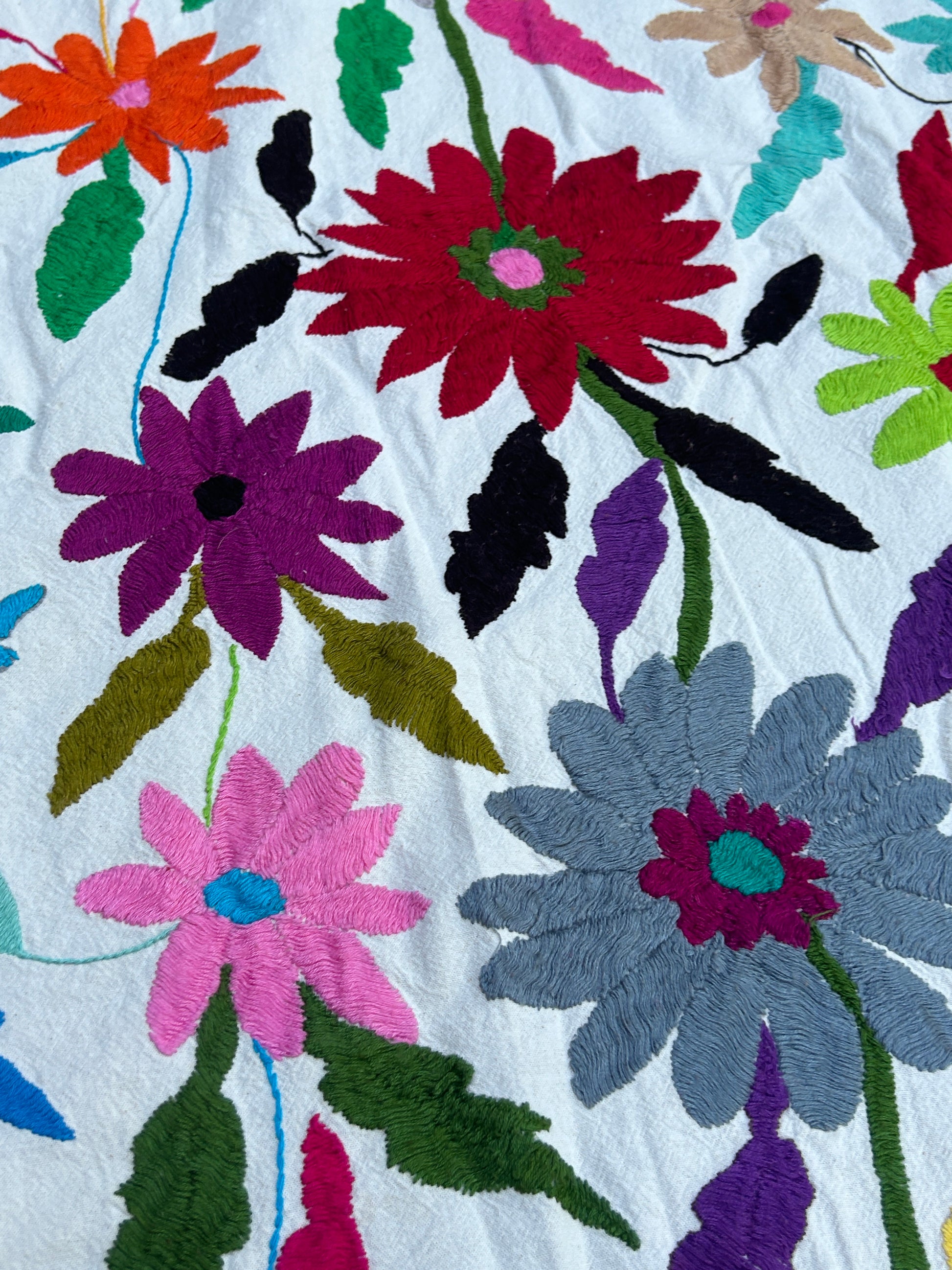 Handmade Otomi Embroidered Bedding or Tablecloth – Flowers Rainbow & Ivory (81"x91")