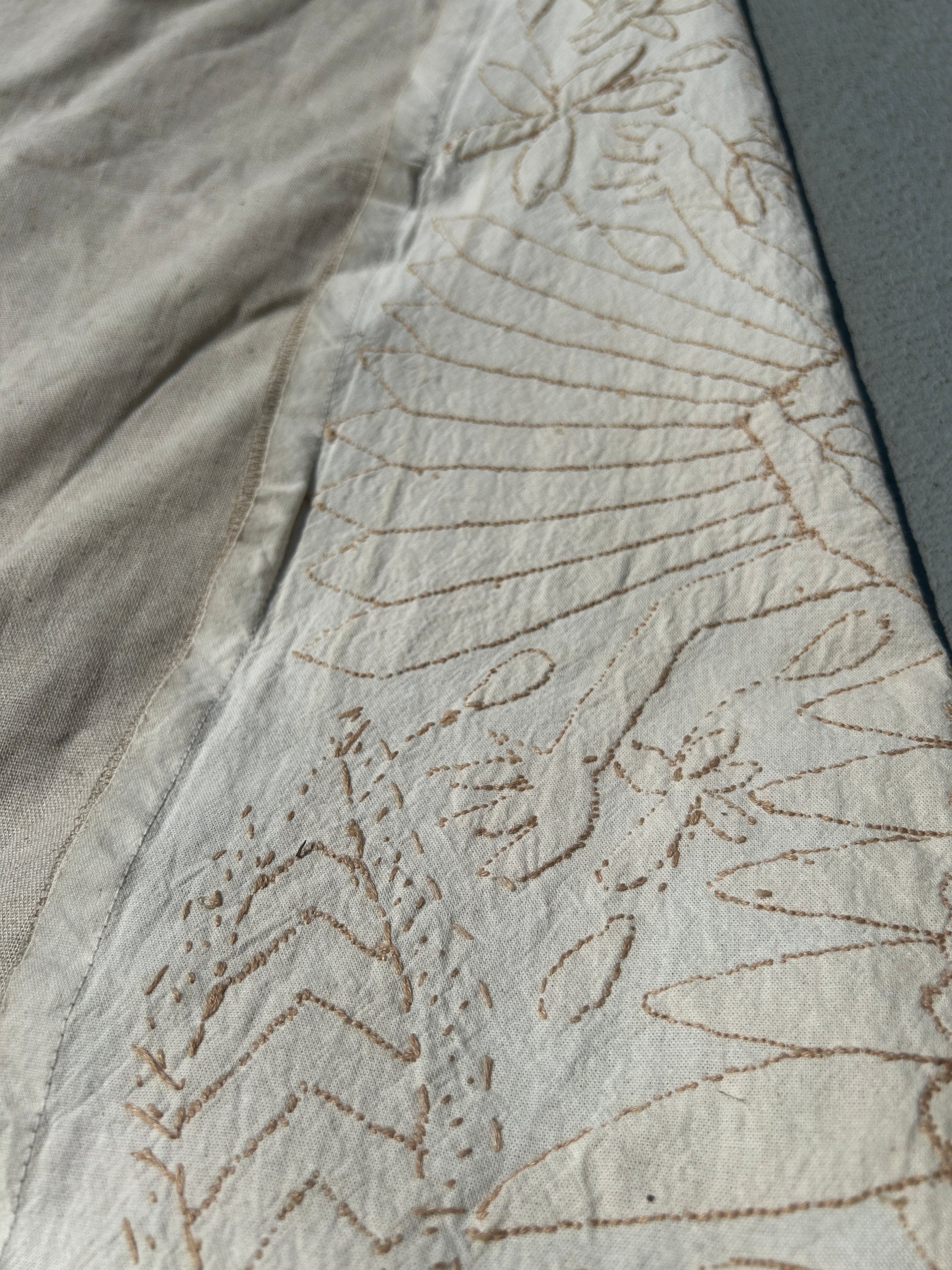 Handmade Mexican Otomi Embroidered Bedding – Tan & Ivory (104"x116")